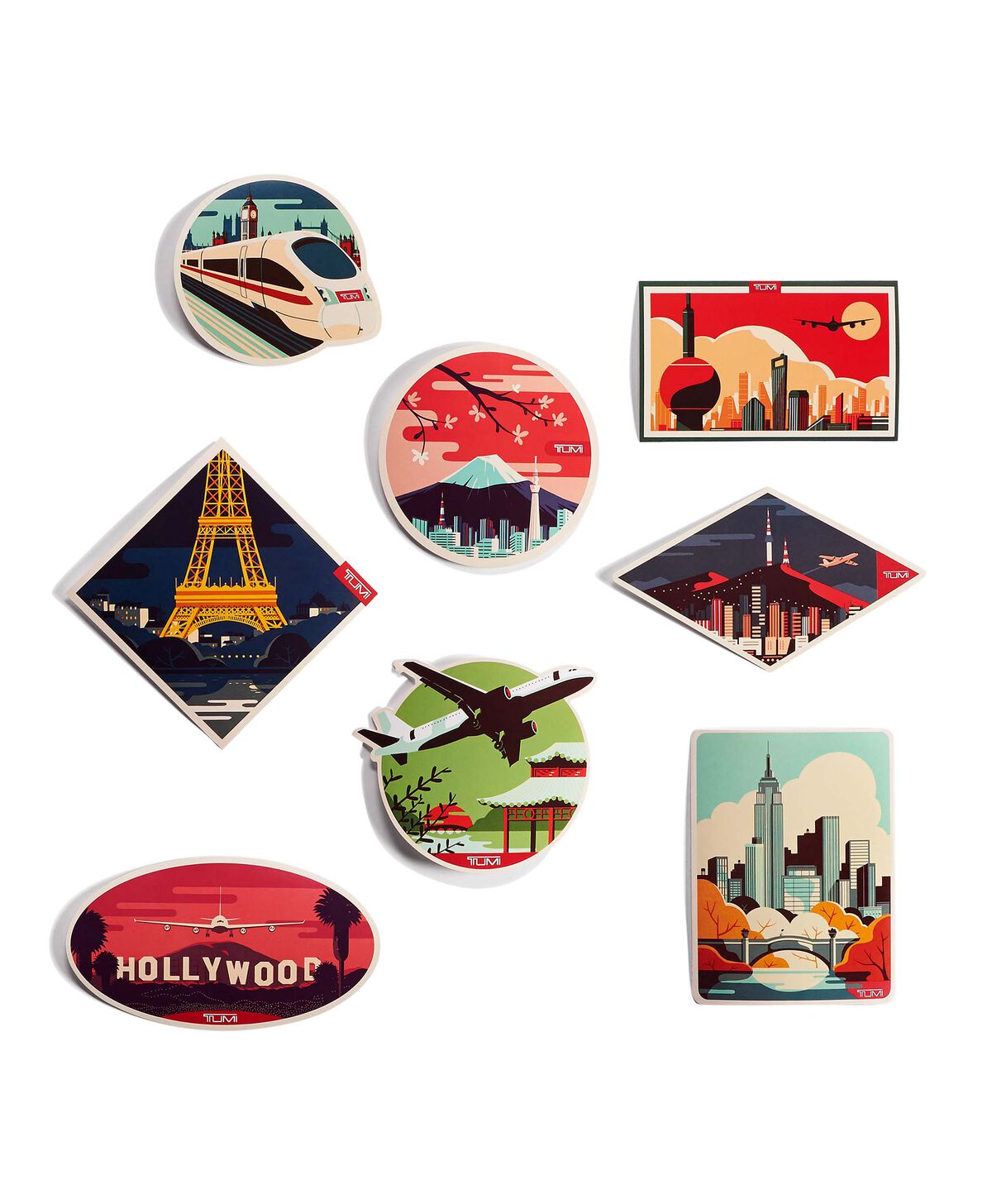 - Autocollants de destination d’inspiration vintage inclus